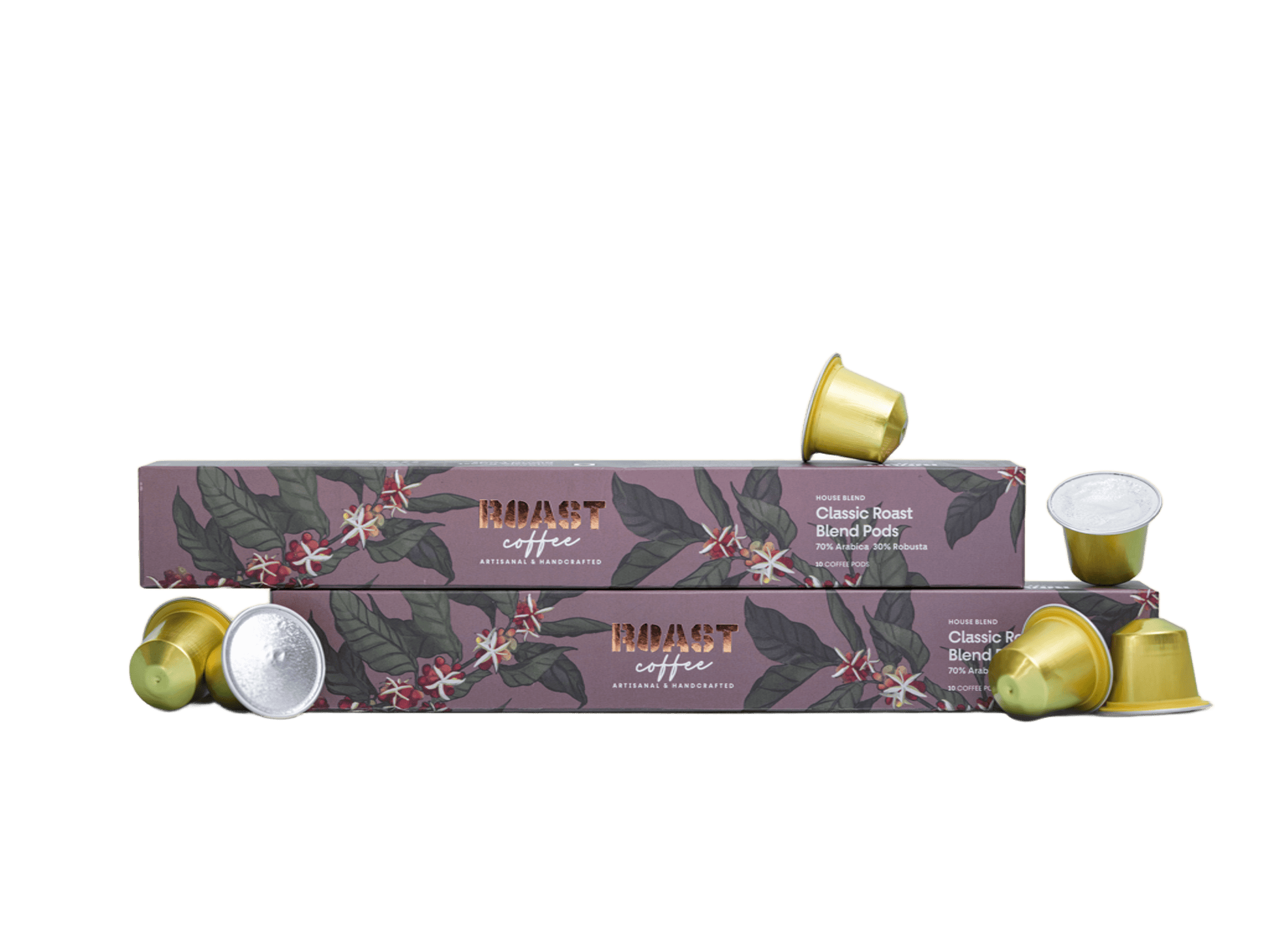 Relish the timeless taste of Classic Roast Blend Pods, a perfect 70% Arabica and 30% Robusta combination. Indulge in bold tasting notes of dark chocolate, roasted nuts, subtle spice, and brown sugar, masterfully crafted with a medium-dark roast. The washed process enhances the clean, rich flavors of this classic blend.
